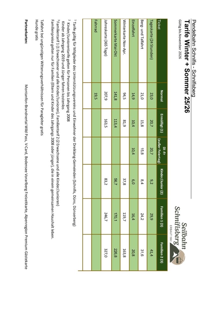 ab 27.12 an den Betriebstagen der Pendelbahn Schnifis ab 10 Uhr geöffnet!